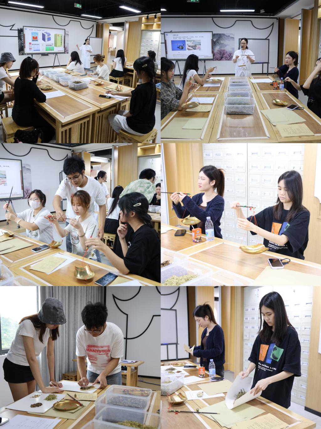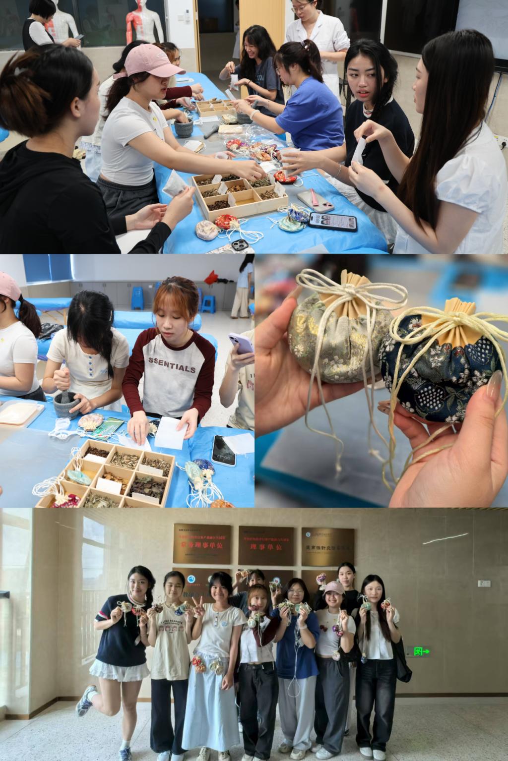 在中藥實踐環(huán)節(jié),學(xué)員走進(jìn)我校中醫(yī)藥文化館,通過“識中藥、抓中藥、稱中藥、包中藥”,親身體驗中藥調(diào)配流程,感受“君臣佐使”理論;動手制作中藥香囊,了解中藥芳香療法,現(xiàn)場藥香縈繞,文化氛圍濃厚。