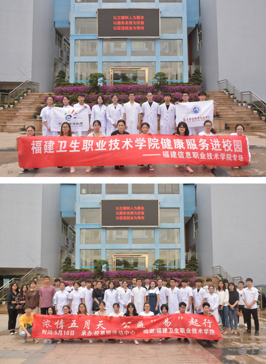 5月10日,在院團委和臨床醫(yī)學系指導下,福建衛(wèi)生職業(yè)技術(shù)學院紅十字會學生分會和學生會社團聯(lián)合會康健俱樂部健康服務進校園活動走進福建信息職業(yè)技術(shù)學院。團委宋秋瓊老師、臨床醫(yī)學系陳銘、徐麗鶯、吳艷芳老師到場指導。