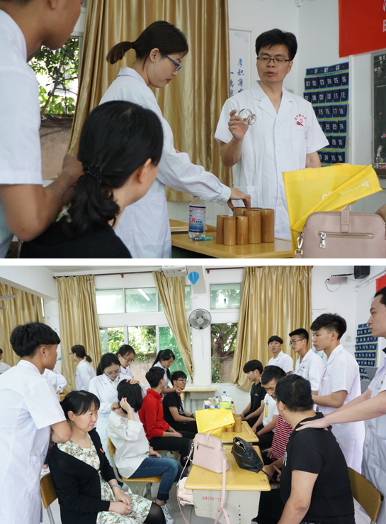 在福信院團委的宣傳下,義診及職教活動聚集了許多福信院師生前來體驗??到【銟凡康某蓡T為福信師生們送去保健推拿、拔罐等義診項目。臨床醫(yī)學系陳銘、徐麗鶯、吳艷芳三位老師在現(xiàn)場與老師同學親切交流,對師生們常見的勞損癥狀提供解答并給出護理建議。