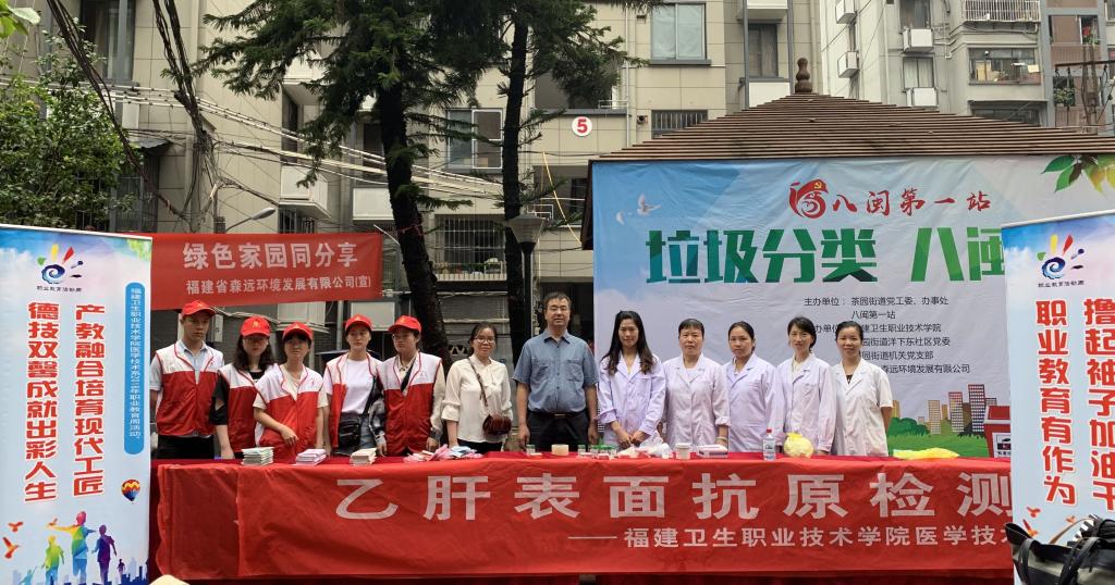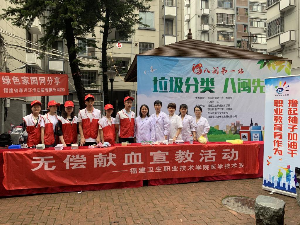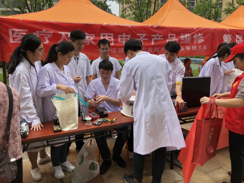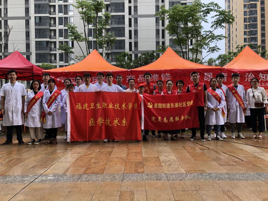為積極響應(yīng)2019年全國(guó)職業(yè)教育活動(dòng)周的號(hào)召,充分展示我院辦學(xué)特色和成果,發(fā)揮我院醫(yī)學(xué)職業(yè)技能優(yōu)勢(shì),推動(dòng)“兩學(xué)一做”學(xué)習(xí)教育常態(tài)化制度化,充分發(fā)揮基層黨組織戰(zhàn)斗堡壘作用和黨員的先鋒模范作用,醫(yī)學(xué)技術(shù)系黨總支組織25位專業(yè)教師(其中,教師黨員19名)帶領(lǐng)48名學(xué)生(其中,學(xué)生入黨積極分子39名)于2019年5月16日前往醫(yī)技系共建合作單位福州市晉安區(qū)茶園街道所屬的洋下東社區(qū)洋下花園小區(qū)和東浦社區(qū)開(kāi)展6項(xiàng)職教活動(dòng)。