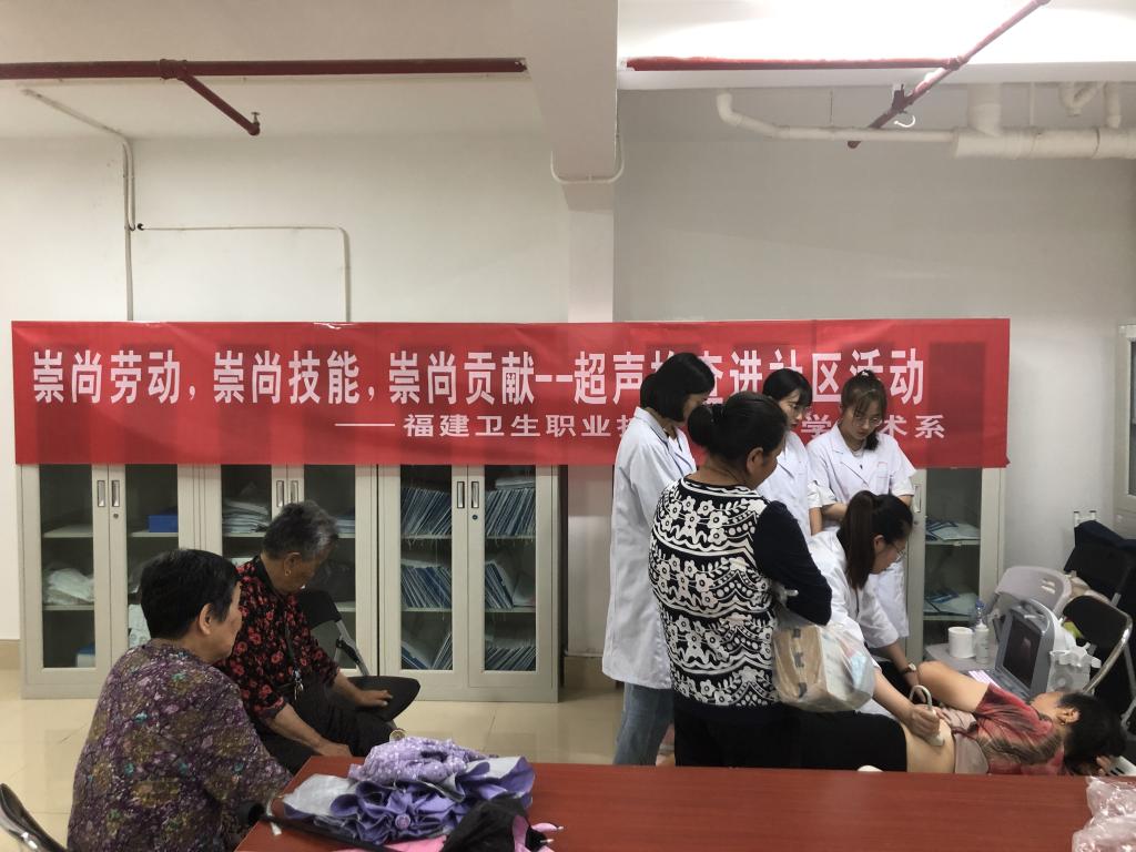 醫(yī)學(xué)影像技術(shù)專業(yè)師生給17名居民進(jìn)行全腹超聲檢查,為他們耐心地解釋超聲檢查報(bào)告,詳細(xì)地分析體檢結(jié)果,進(jìn)行全面的健康教育,提供進(jìn)一步的就醫(yī)指導(dǎo)。該活動(dòng)受到東浦社區(qū)群眾的熱烈歡迎,前來(lái)就診民眾紛紛表示,到大醫(yī)院看病做檢查花錢(qián)多、排隊(duì)時(shí)間久,我院老師進(jìn)社區(qū)做免費(fèi)超聲檢查讓他們對(duì)自身的健康狀況更加了解,對(duì)自己的就醫(yī)方向更加清晰。