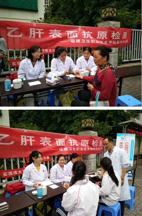 微免教研組全體黨員教師和部分學(xué)生匆匆吃完午飯便趕赴國(guó)光社區(qū),于下午2點(diǎn)半準(zhǔn)時(shí)開展宣教工作,黨員們耐心地為居民講解此次活動(dòng)目的和內(nèi)容,為每位受檢者現(xiàn)場(chǎng)登記、填寫調(diào)查問卷及開展檢測(cè)。活動(dòng)負(fù)責(zé)人連健老師說:“為社區(qū)居民提供優(yōu)質(zhì)快速的檢驗(yàn)是我們福建衛(wèi)生職業(yè)技術(shù)學(xué)院醫(yī)學(xué)技術(shù)系的服務(wù)宗旨。” 本次職教活動(dòng)不僅對(duì)國(guó)家評(píng)價(jià)乙肝防控措施效果有重要意義,而且可以為市民提供一次免費(fèi)檢測(cè)乙肝抗原的機(jī)會(huì)。