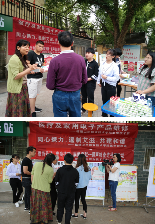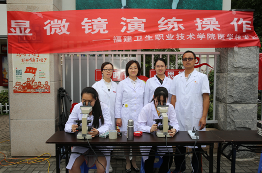 為積極響應(yīng)2018年全國(guó)職業(yè)教育活動(dòng)周的號(hào)召,充分展示我院辦學(xué)特色和成果,發(fā)揮我院醫(yī)學(xué)職業(yè)技能優(yōu)勢(shì),推動(dòng)“兩學(xué)一做”學(xué)習(xí)教育常態(tài)化制度化,進(jìn)一步加強(qiáng)基層服務(wù)型黨組織建設(shè),充分發(fā)揮黨員模范帶頭作用,以“職教改革四十年,產(chǎn)教融合育工匠”為主題,醫(yī)學(xué)技術(shù)系組織24位專業(yè)教師(包含教師黨員)帶領(lǐng)46名學(xué)生(包含學(xué)生入黨積極分子和學(xué)生干部)于2018年5月10日前往福州市國(guó)光社區(qū)和洪山橋社區(qū)開展系列職教活動(dòng)。