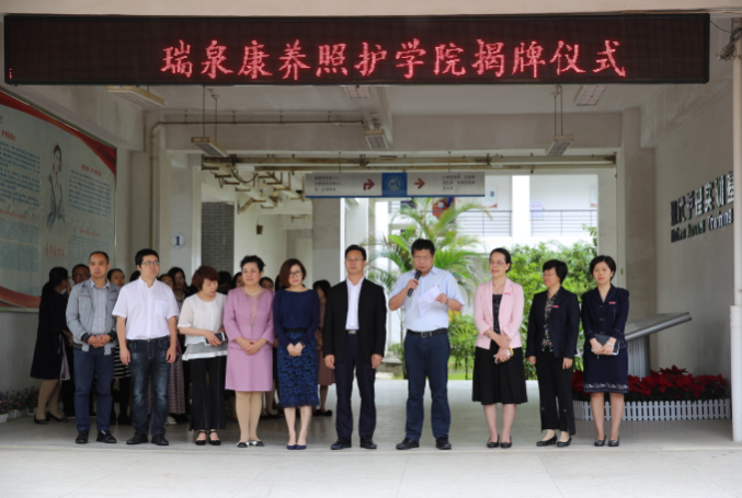 在全場嘉賓的熱烈掌聲中,蘇友新院長、鄭翠紅副院長、謝濤書記、閆仕政先生、劉毅玲女士、張振香女士共同為 “瑞泉康養(yǎng)照護學(xué)院”揭牌,這標志著瑞泉康養(yǎng)照護學(xué)院正式成立運行。瑞泉康養(yǎng)照護學(xué)院的成立,是我院深化校企合作,推進產(chǎn)教融合的一項重要建設(shè)項目。雙方將以此為契機,構(gòu)建協(xié)同育人機制,將康養(yǎng)照護學(xué)院共建成為一個集教學(xué)、培訓(xùn)和研發(fā)等功能于一體的康養(yǎng)照護人才培養(yǎng)培訓(xùn)基地和應(yīng)用技術(shù)創(chuàng)新服務(wù)平臺,為福建省當(dāng)前急需的養(yǎng)老照護,居家照護、康復(fù)護理等提供人才支持和技術(shù)支撐,同時院還將持續(xù)推進職業(yè)教育精準技術(shù)教育扶貧工作,探索職業(yè)教育扶貧的內(nèi)涵,培養(yǎng)一批符合現(xiàn)代健康服務(wù)理念,對接健康產(chǎn)業(yè)需求的“下得去、留得住”的康養(yǎng)照護人才,幫助南平地區(qū)部分貧困家庭實現(xiàn)教育脫貧,擔(dān)當(dāng)起職業(yè)教育服務(wù)社會、服務(wù)學(xué)生發(fā)展的教育職能。