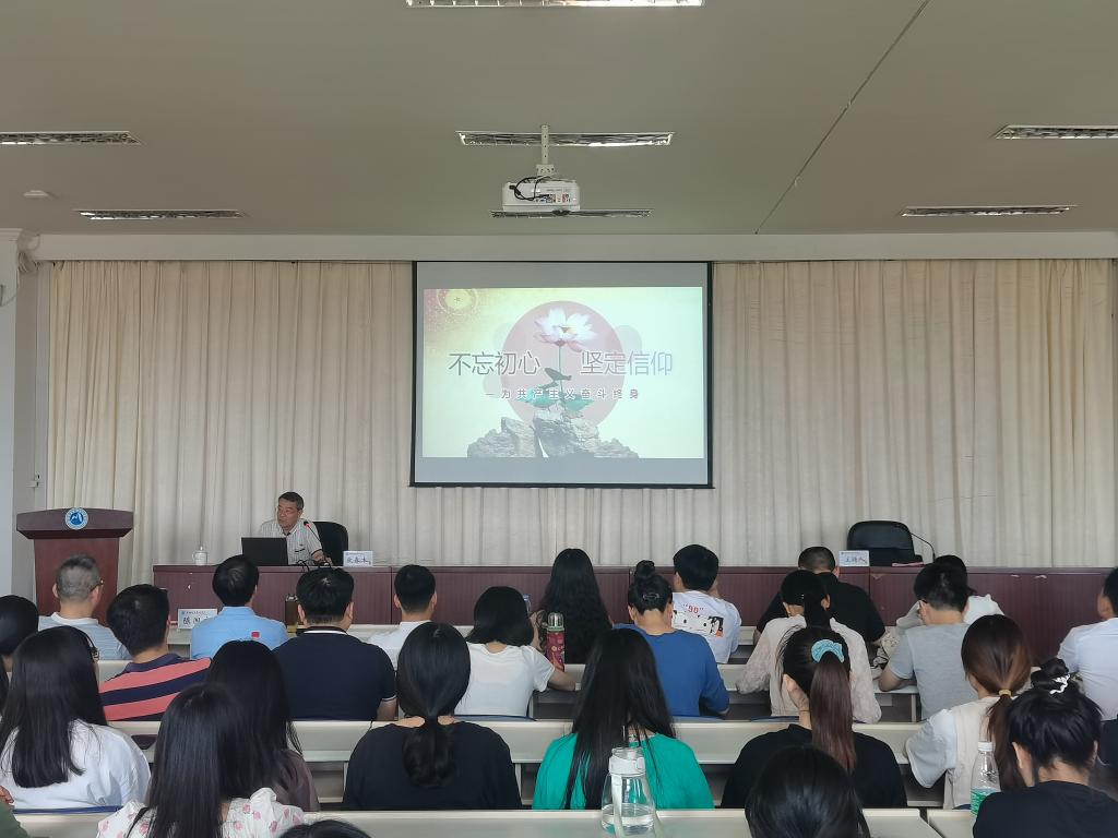 作為一名有著50年黨齡的老黨員,歐春木以“為共產(chǎn)主義奮斗終身只是一個‘口號’嗎”、“共產(chǎn)黨員應為自己畫怎樣的‘自畫像’”、“真正的共產(chǎn)黨員是怎樣‘煉’成的”三問為主線,結合黨史學習詳細闡述了如何做一名合格的共產(chǎn)黨員。他指出當我們第一次提交入黨申請書的時候,就允了一份承諾、擔了一份責任、承了一份使命,這承諾、這責任、這使命必須銘記一輩子、守護一輩子、忠誠一輩子。他號召全體師生回望源頭,汲取信仰力量;面向未來,更思肩上重任,為共產(chǎn)主義奮斗終身。