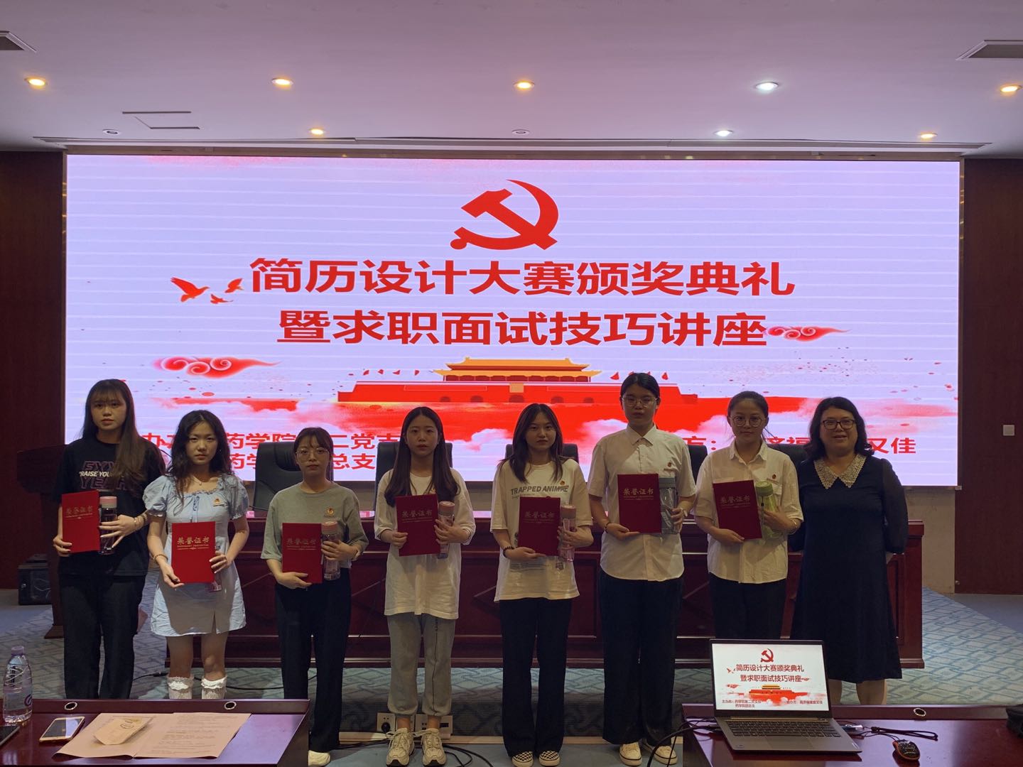 2021年6月10日,藥學(xué)院第二黨支部黨員、高濟(jì)福建宜又佳醫(yī)藥有限責(zé)任公司代表及藥學(xué)院各個(gè)專業(yè)的180位同學(xué)參加了于實(shí)訓(xùn)樓四樓會(huì)議室舉辦的簡(jiǎn)歷設(shè)計(jì)大賽頒獎(jiǎng)典禮暨求職面試技巧講座。本次簡(jiǎn)歷設(shè)計(jì)大賽共計(jì)收到學(xué)生簡(jiǎn)歷作品337份,經(jīng)過(guò)專家組的評(píng)選,最終確定一等獎(jiǎng)、二等獎(jiǎng)、三等獎(jiǎng)獲得者共27人。