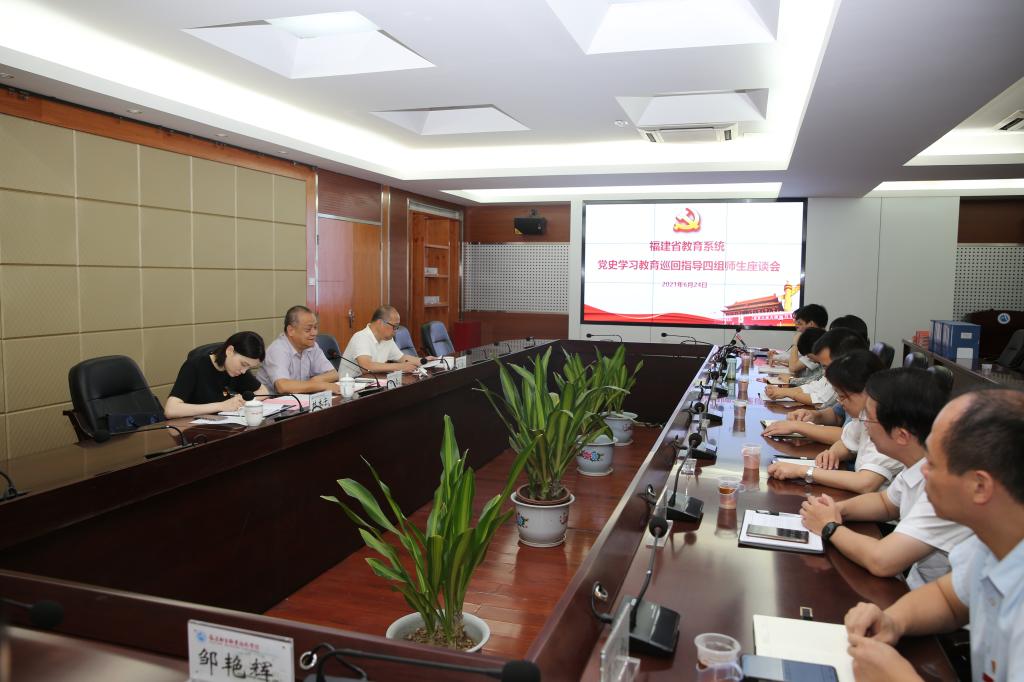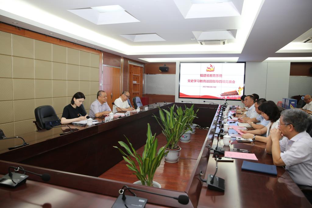 6月24日,福建省教育系統(tǒng)黨史學習教育第四巡回指導組副組長葉青處長、高磐副部長、林木子老師一行蒞臨我校指導黨史學習教育工作。校黨委班子成員、校黨史學習教育指導組成員、二級黨總支(直屬黨支部)書記共22人參加見面會。