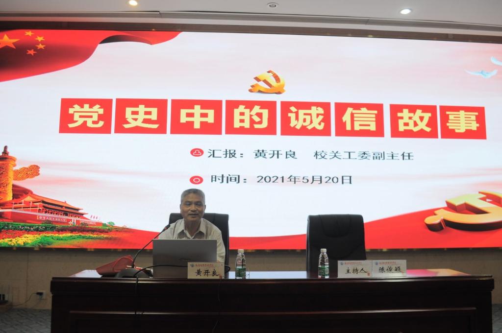 學校關工委副主任黃開良為學員們上分黨校第一課《黨史中的誠信故事》,講述黨的百年奮斗史,宣講黨史中的誠信故事,引導同學們用黨的奮斗歷程和偉大成就鼓舞斗志、明確目標、努力成才。