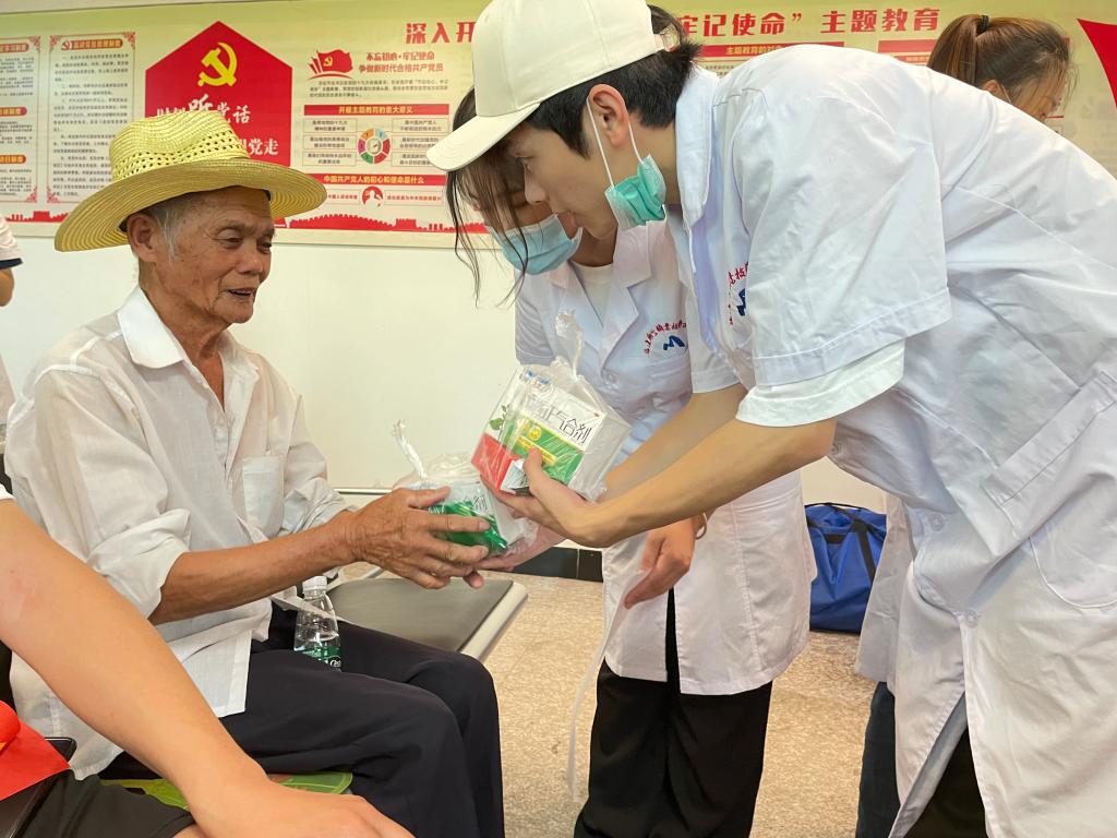 為倡導健康生活方式、助力基層群眾健康,師生們來到古田縣鶴塘鎮(zhèn)南陽村進行義診活動。在義診服務之余,還為村民們提供常見病咨詢、悉心指導用藥,疫情防護等科普知識。暖心的義診活動深受廣大村民的歡迎,不僅消除了群眾疾病的隱患,減輕了他們的負擔,同時強化了村民的健康管理意識。學生們用自己的實踐獻禮百年華誕,用自己的所學為筑夢健康中國助力,以實際行動踐行了醫(yī)學生的初心使命。