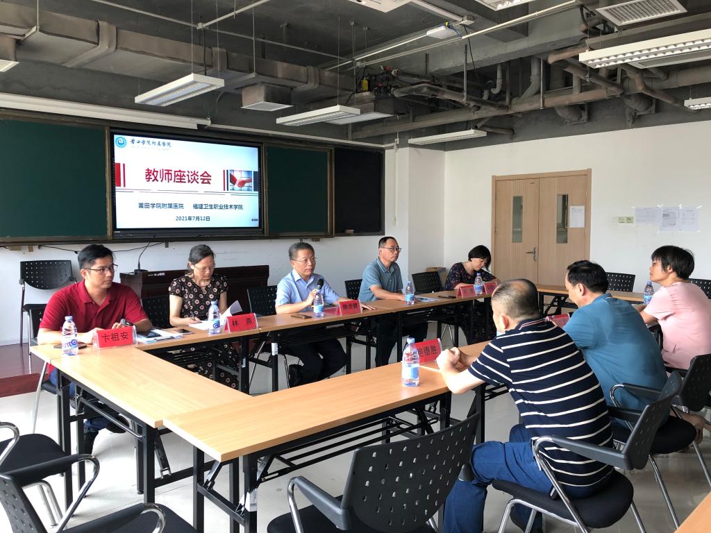 隨后,我校一行與醫(yī)院的帶教老師開展座談,通過帶教老師的反饋,了解學(xué)生在醫(yī)院學(xué)習(xí)情況及各方面表現(xiàn)。帶教老師充分肯定了我校實(shí)習(xí)生的表現(xiàn),對實(shí)踐教學(xué)方法的改進(jìn)也提出了寶貴的建議。另外,我校一行還看望了莆田涵江醫(yī)院、莆田學(xué)院附屬醫(yī)院的實(shí)習(xí)生,聽取了同學(xué)們的臨床實(shí)習(xí)感悟,并對同學(xué)們提出的問題意見做了詳細(xì)的回答和記錄。陳貞健強(qiáng)調(diào)實(shí)習(xí)期間專業(yè)知識和實(shí)際操作相結(jié)合的重要性,以及實(shí)習(xí)期間的安全問題,鼓勵同學(xué)們要踏實(shí)工作,努力提高實(shí)踐能力,增強(qiáng)職業(yè)崗位適應(yīng)性,做好職業(yè)生涯規(guī)劃,更好地滿足社會要求,盡快完成角色轉(zhuǎn)變。