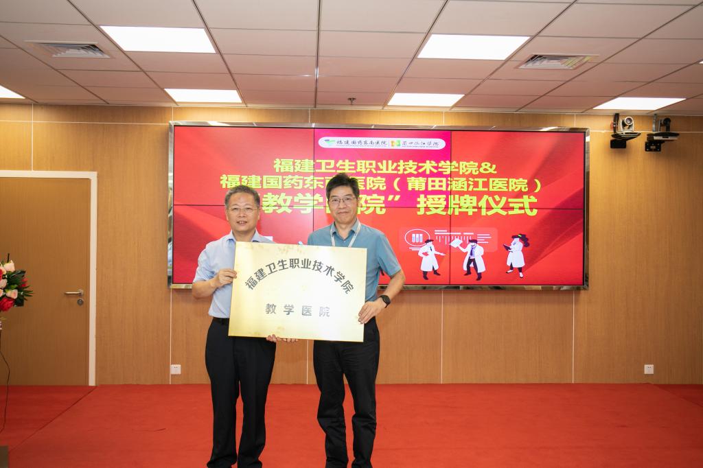 7月12日上午,副校長陳貞健帶領(lǐng)藥學(xué)院副院長肖健、醫(yī)學(xué)技術(shù)系黨總支副書記林燕、醫(yī)學(xué)系馬清璇副教授、實(shí)習(xí)實(shí)訓(xùn)中心卞祖安科長一行5人赴莆田涵江醫(yī)院舉行教學(xué)醫(yī)院授牌儀式。莆田涵江醫(yī)院領(lǐng)導(dǎo)班子、職能科室負(fù)責(zé)人以及臨床教師代表出席儀式。
