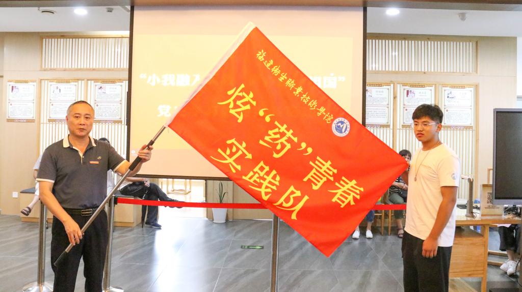 隨后,藥學(xué)院黨總支書記鄭力宏將實踐隊的隊旗授予實踐隊隊長李忠緒,標(biāo)志本次福建衛(wèi)生職業(yè)技術(shù)學(xué)院藥學(xué)院"炫藥青春"實踐隊的瑞來春之行正式開啟。
