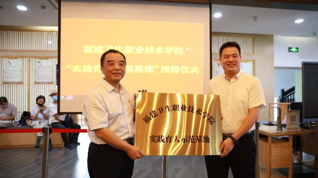 儀式上,游鋒向福建瑞來春健康管理有限公司授予“福建衛(wèi)生職業(yè)技術(shù)學(xué)院實踐育人示范基地”的牌匾。此次黨史學(xué)習(xí)教育,是我校與福建省知名中藥企業(yè)瑞來春健康管理有限公司的又一次深度合作,標(biāo)志著產(chǎn)教融合校企合作的進一步內(nèi)涵延伸。