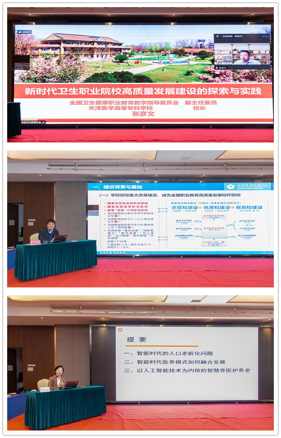 會(huì)上,來(lái)自省內(nèi)外醫(yī)藥衛(wèi)生與健康領(lǐng)域的三位專家教授圍繞大會(huì)主題進(jìn)行專題報(bào)告。天津醫(yī)學(xué)高等專科學(xué)校校長(zhǎng)張彥文以《新時(shí)代衛(wèi)生職業(yè)院校高質(zhì)量發(fā)展建設(shè)的探索與實(shí)踐》為題,通過(guò)現(xiàn)場(chǎng)連線的方式為參會(huì)人員開(kāi)展講座。他分享了天津醫(yī)學(xué)高等??茖W(xué)校建設(shè)改革目標(biāo)制定和實(shí)施的經(jīng)驗(yàn),為全面加強(qiáng)產(chǎn)教融合、校企合作提供高屋建瓴的指導(dǎo)。金華職業(yè)技術(shù)學(xué)院樓宏強(qiáng)教授以《職業(yè)教育深入推進(jìn)產(chǎn)教融合實(shí)踐探索》為題,從建設(shè)背景、基礎(chǔ)、思路及舉措等層層推進(jìn),展開(kāi)論述。福建師范大學(xué)吳宏洛教授以《人工智能時(shí)代醫(yī)養(yǎng)融合發(fā)展的養(yǎng)老服務(wù)探析》為題,闡述人工智能技術(shù)對(duì)健康養(yǎng)老產(chǎn)業(yè)及人才培養(yǎng)的影響,引發(fā)了現(xiàn)場(chǎng)人員的熱烈討論。三位專家的報(bào)告深入淺出地闡述了教育強(qiáng)國(guó)建設(shè)背景下如何通過(guò)產(chǎn)教融合實(shí)現(xiàn)教育鏈、人才鏈與產(chǎn)業(yè)鏈、創(chuàng)新鏈的有機(jī)銜接,干貨滿滿。