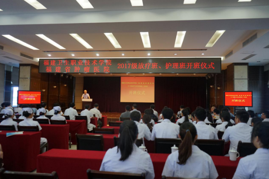 2018年9月3日上午,我院黨委書記曾武祈、院長(zhǎng)蘇友新、副院長(zhǎng)鄭翠紅率隊(duì)先后前往福建省立醫(yī)院、福建省腫瘤醫(yī)院、福州東南眼科醫(yī)院出席2017級(jí)護(hù)理、影像技術(shù)(放射治療方向)、眼視光技術(shù)專業(yè)校企合作班開班儀式。參加開班儀式的還有各醫(yī)院領(lǐng)導(dǎo),雙方有關(guān)職能科室負(fù)責(zé)人,學(xué)院相關(guān)系部主任、專業(yè)帶頭人、教研室主任及四個(gè)班級(jí)的全體學(xué)生。