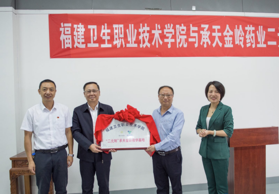 開班儀式在大家熱烈掌聲中圓滿落幕,會后雙方人員合影留念。隨后我校一行人在羅旭輝副縣長帶領(lǐng)下,參觀福建承天金嶺藥業(yè)展廳。