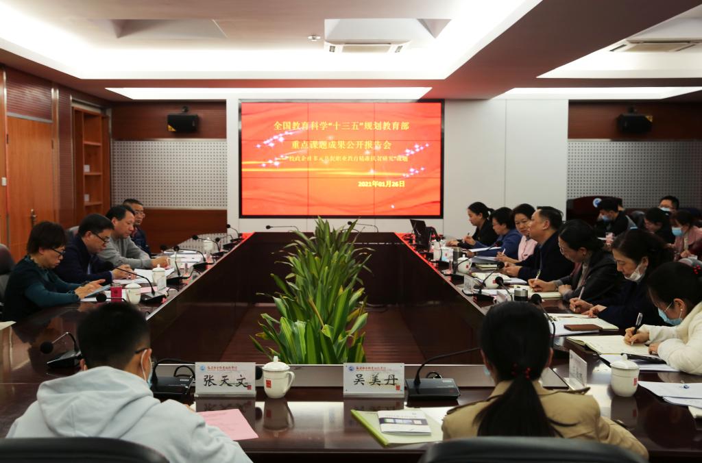 1月26日下午,由我校黨委書記曾武祈主持的全國教育科學(xué)“十三五”規(guī)劃教育部重點課題“校政企社多元共促職業(yè)教育精準(zhǔn)扶貧研究”成果公開報告會在我校舉行,參會的評議專家有閩江學(xué)院副院長陳興明研究員、福建省教育科學(xué)研究所所長吳明洪編審、福建省教育科學(xué)研究所基礎(chǔ)教育研究室主任郭少榕研究員、福建省教育科學(xué)研究所《教育評論》編輯部主任鐘建林副編審。會議由副院長鄭翠紅主持,課題組負責(zé)人曾武祈、課題組成員、部分教師代表以及教務(wù)處、科研處相關(guān)部門人員出席本次報告會。