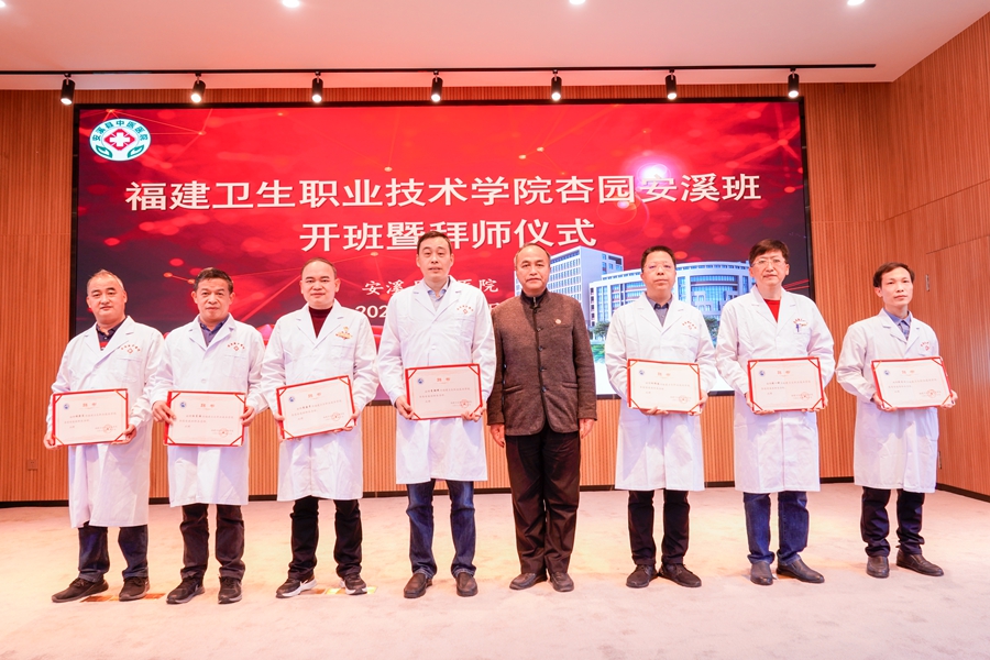 傳承文化薪火傳,拜師結對共成長。2月23日下午,安溪縣中醫(yī)院舉行福建衛(wèi)生職業(yè)技術學院杏園安溪班開班暨拜師儀式。