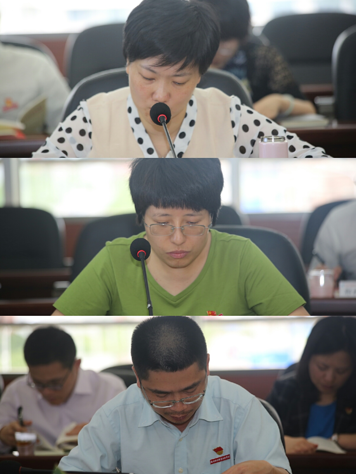 吳華、柯瓊鶯、林穎峰三位同志分別誦讀領(lǐng)學(xué)《毛澤東、鄧小平、江澤民、胡錦濤關(guān)于中國共產(chǎn)黨歷史論述摘編》。