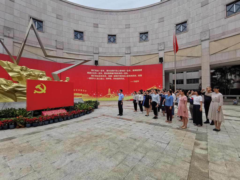 活動現(xiàn)場,全體黨員在黨總支組織委員何舒瀾的帶領(lǐng)下,面向黨旗,握緊右拳,重溫入黨誓詞。隨后,在紀(jì)念館講解員的解說下,黨員們集體參觀“革命風(fēng)雷”展覽館,展覽分為“革命綱領(lǐng)”“風(fēng)起云涌”“喚起工農(nóng)”三部分,以豐富的歷史文物、翔實(shí)的文史資料全面生動地展示中國共產(chǎn)黨從二大到四大,在反帝反封建的革命風(fēng)雷中的成長歷程。