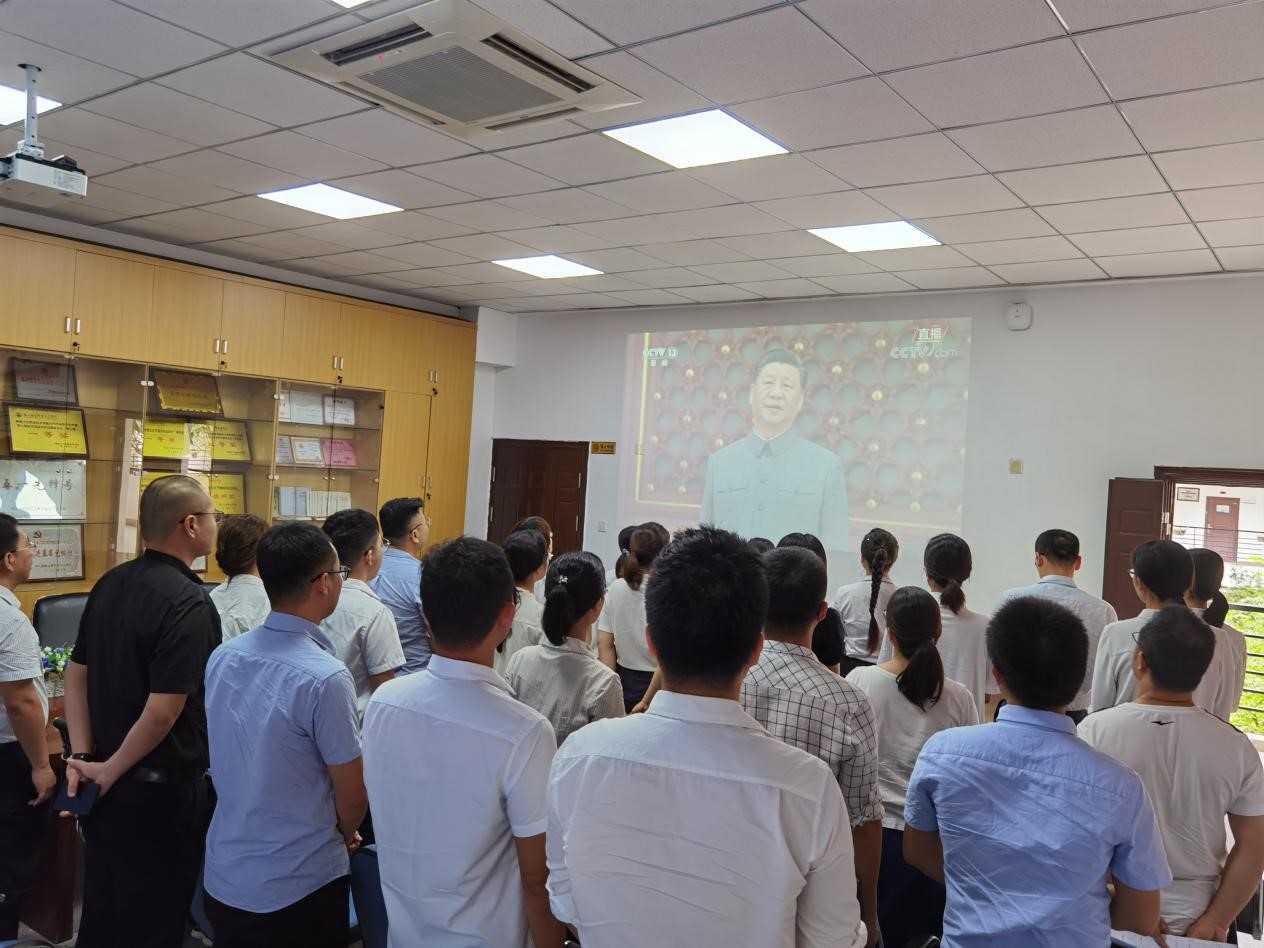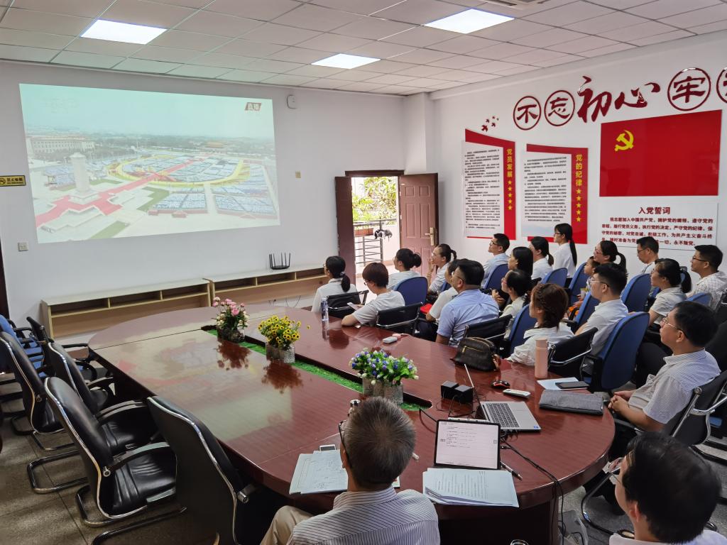 隨后,黨員在會(huì)議室一起觀看了“慶祝中國(guó)共產(chǎn)黨成立一百周年大會(huì)”直播。在播放國(guó)歌時(shí),全體黨員自覺(jué)起立,共唱國(guó)歌。