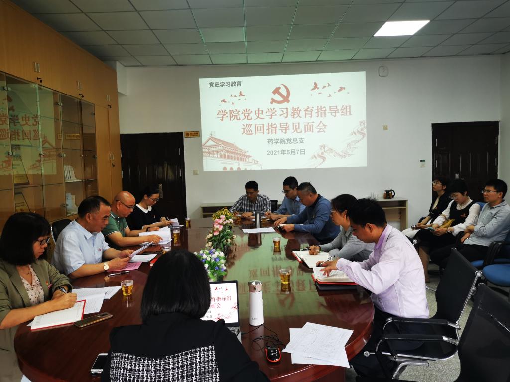 2021年5月7日,藥學院黨總支在會議室召開校黨史學習教育指導組見面會。第三指導組組長、紀委書記游鋒,指導組成員醫(yī)學系黨總支書記邱滾忠、黨委組織統(tǒng)戰(zhàn)部張云霞、醫(yī)學系輔導員陳恩平蒞臨現(xiàn)場指導。藥學院黨總支領導班子成員、全體教職工黨員參加大會。