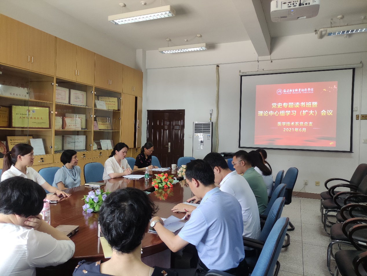 6月17日,醫(yī)學(xué)技術(shù)系黨總支召開黨史專題讀書班暨6月理論學(xué)習(xí)中心組(擴大)會議。會議由黨總支書記陳俊穎同志主持,醫(yī)學(xué)技術(shù)系領(lǐng)導(dǎo)班子、黨總支委員、黨支部書記、教研室主任、實訓(xùn)中心主任、團(tuán)總支書記、系辦人員及輔導(dǎo)員等參加了會議。