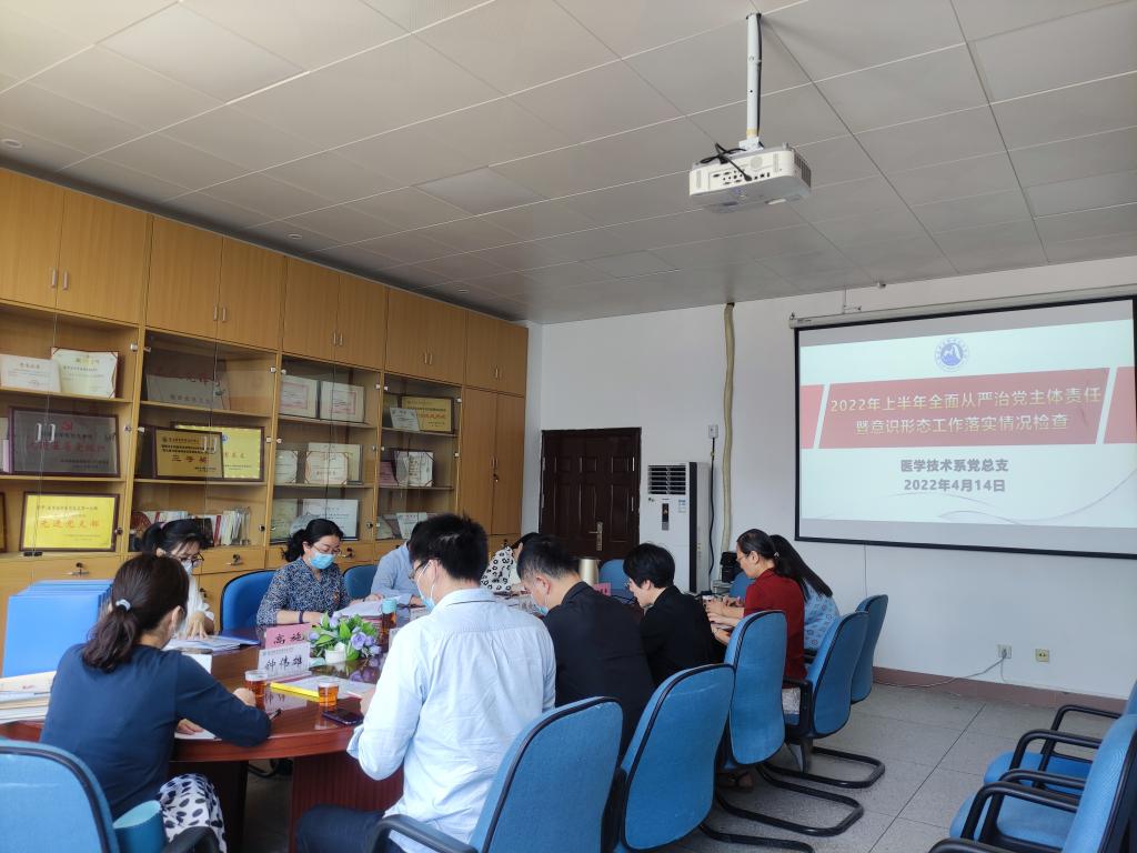 2022年4月14日,校黨委委員黃銘珊帶隊黨委組織統(tǒng)戰(zhàn)部副部長謝宗穎,黨委宣傳部工作人員高施,醫(yī)學院黨總支專職組織員陳恩平一行4人,赴醫(yī)學技術系黨總支開展2022年上半年全面從嚴治黨主體責任暨意識形態(tài)工作責任制落實情況檢查。醫(yī)學技術系黨政領導班子成員、總支委員參加本次督查。