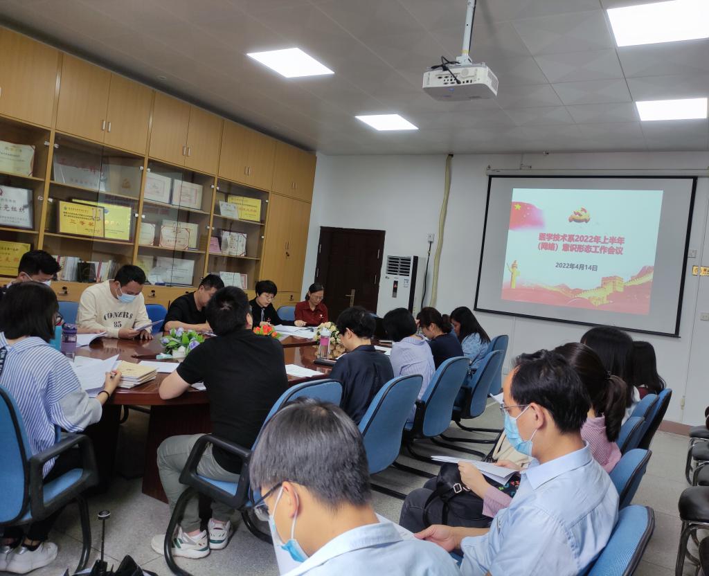 4月14日,醫(yī)學技術系2022年上半年(網(wǎng)絡)意識形態(tài)工作會議在系部會議室召開。醫(yī)學技術系意識形態(tài)工作領導小組及辦公室成員參加會議,系主任翁繩和列席會議,會議由系黨總支書記柯瓊鶯主持。