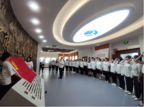 在學(xué)生第二黨支部書記蔣程序同志帶領(lǐng)下,敖昌群等預(yù)備黨員面向黨旗,舉起右手,莊嚴(yán)宣誓,用鏗鏘有力的聲音許下新時(shí)代共產(chǎn)黨人鄭重的承諾。擲地有聲的誓言響徹校史館,印證百年閩衛(wèi)院人的使命擔(dān)當(dāng)。