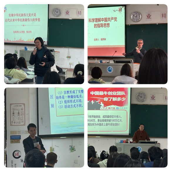 本期培訓(xùn)班邀請(qǐng)馬克思主義學(xué)院老師為學(xué)員講授黨的基本理論知識(shí)。陳洪月老師以《實(shí)現(xiàn)中華民族偉大復(fù)興是近代以來(lái)中華民族最偉大的夢(mèng)想》為題,宣講習(xí)近平新時(shí)代中國(guó)特色社會(huì)主義思想;胡濟(jì)林老師以《科學(xué)理解中國(guó)共產(chǎn)黨的指導(dǎo)思想》為題,引導(dǎo)學(xué)員們?nèi)鎸W(xué)習(xí)黨的指導(dǎo)思想;龍慧以時(shí)間為脈絡(luò),深入解讀《黨史上的三個(gè)歷史決議》;江洪老師講授《馬克思主義宗教理論與黨的宗教政策》,引導(dǎo)學(xué)員們樹立科學(xué)世界觀。
