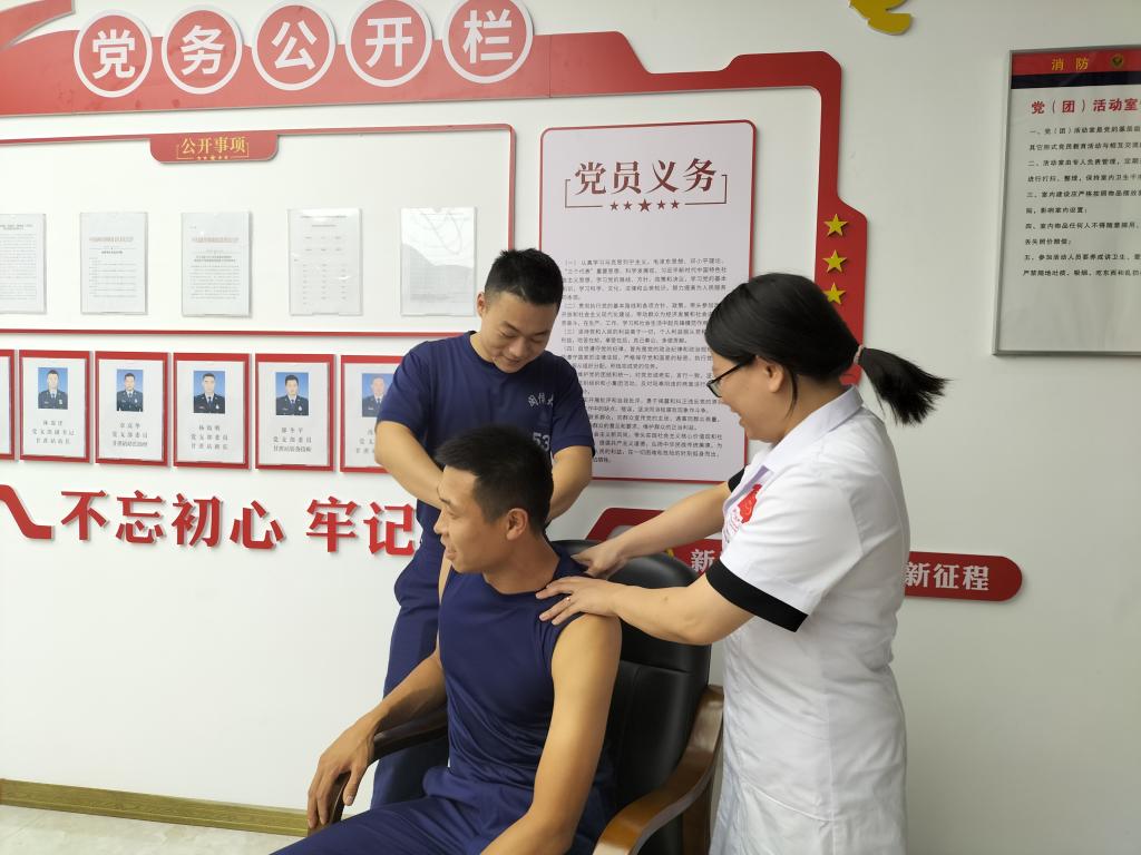 由于消防員職業(yè)的特殊性,他們大多存在頸肩、腰背疼痛等問題,師生們?yōu)槠涮峁┩颇谩喂?、刮痧等義診服務(wù);消防員表示此次學(xué)習(xí)收獲頗多,希望后期有更多的學(xué)習(xí)義診活動。