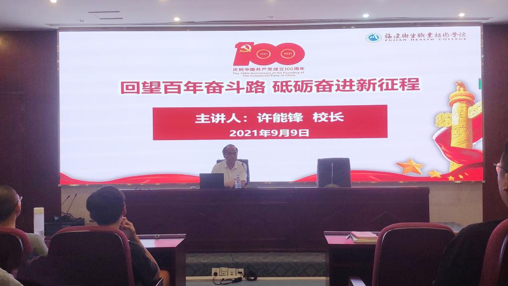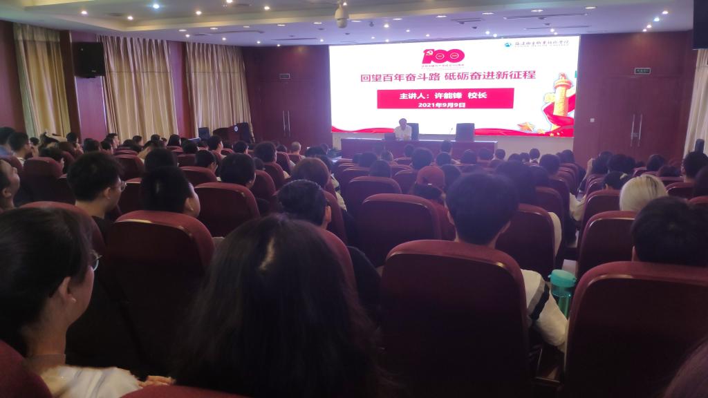 為讓學(xué)生更好地銘記歷史、傳承黨的精神,弘揚(yáng)黨的優(yōu)良革命傳統(tǒng),進(jìn)一步堅(jiān)定理想信念,厚植家國(guó)情懷,凝聚起奮進(jìn)新征程的強(qiáng)大向心力,2021年9月9日,校長(zhǎng)許能鋒在實(shí)訓(xùn)樓四樓報(bào)告廳為20針推301、302班、20中醫(yī)302班100多名學(xué)生講授了一場(chǎng)生動(dòng)的“開(kāi)學(xué)第一課”。
