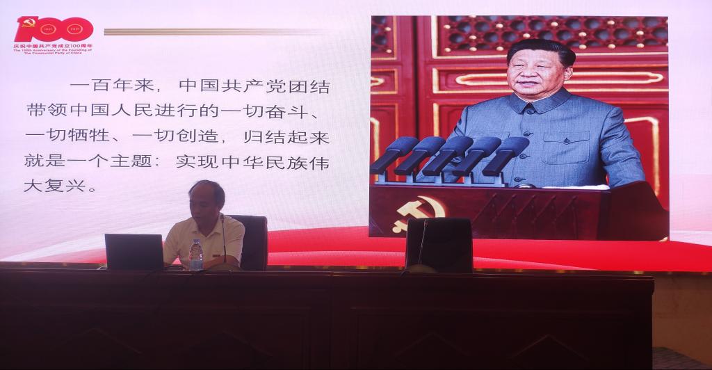 許能鋒以“回望百年奮斗路 砥礪奮進(jìn)新征程”為主題,從豐功偉績(jī)恢宏史詩(shī)、精神血脈代代相傳、以史為鑒、開(kāi)創(chuàng)未來(lái)、篤行初心啟航新征程四個(gè)部分娓娓展開(kāi)。