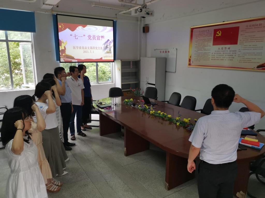 2021年7月1日,醫(yī)學(xué)系第四黨支部全體黨員齊聚醫(yī)學(xué)基礎(chǔ)部會議室,開展慶祝中國共產(chǎn)黨成立100周年主題黨日活動。