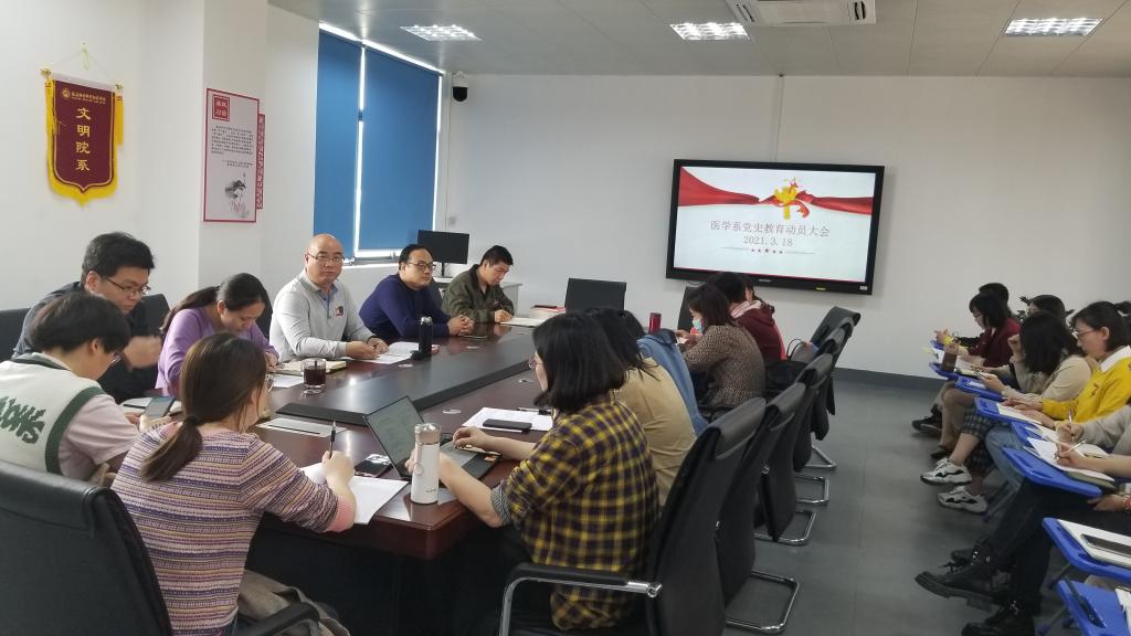 會(huì)上,邱滾忠書記傳達(dá)了3月17日學(xué)院召開的黨史學(xué)習(xí)教育動(dòng)員大會(huì)的主要精神,對(duì)醫(yī)學(xué)系黨總支今后的學(xué)習(xí)教育活動(dòng)進(jìn)行了部署,要求全系黨員教師把黨史學(xué)習(xí)教育作為貫穿今年全年的一項(xiàng)重大政治任務(wù),全面領(lǐng)會(huì)習(xí)近平總書記重要講話,提高政治站位,堅(jiān)定理想信念,堅(jiān)守“立德樹人”教育的初心和使命,將“醫(yī)者仁心”的職業(yè)精神與我系的“尊醫(yī)、重志、學(xué)上、行善”的文化有機(jī)結(jié)合,立足系部實(shí)際,守正創(chuàng)新,以昂揚(yáng)奮進(jìn)姿態(tài)不斷提升我系專業(yè)水平。
