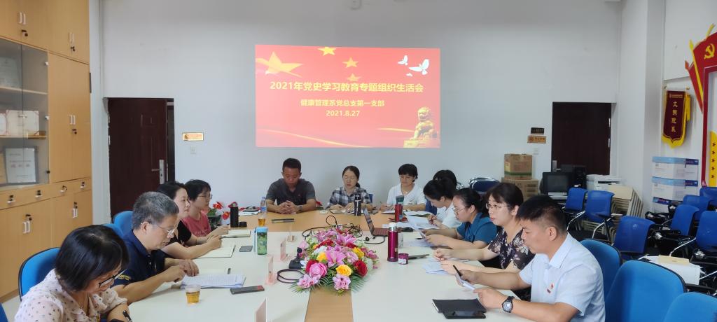 2021年8月27日,健康管理系黨總支第一支部召開(kāi)黨史學(xué)習(xí)教育專(zhuān)題組織生活會(huì),院領(lǐng)導(dǎo)陳貞健同志以普通黨員身份參加,學(xué)校第四督導(dǎo)小組蒞臨本次會(huì)議指導(dǎo)工作。