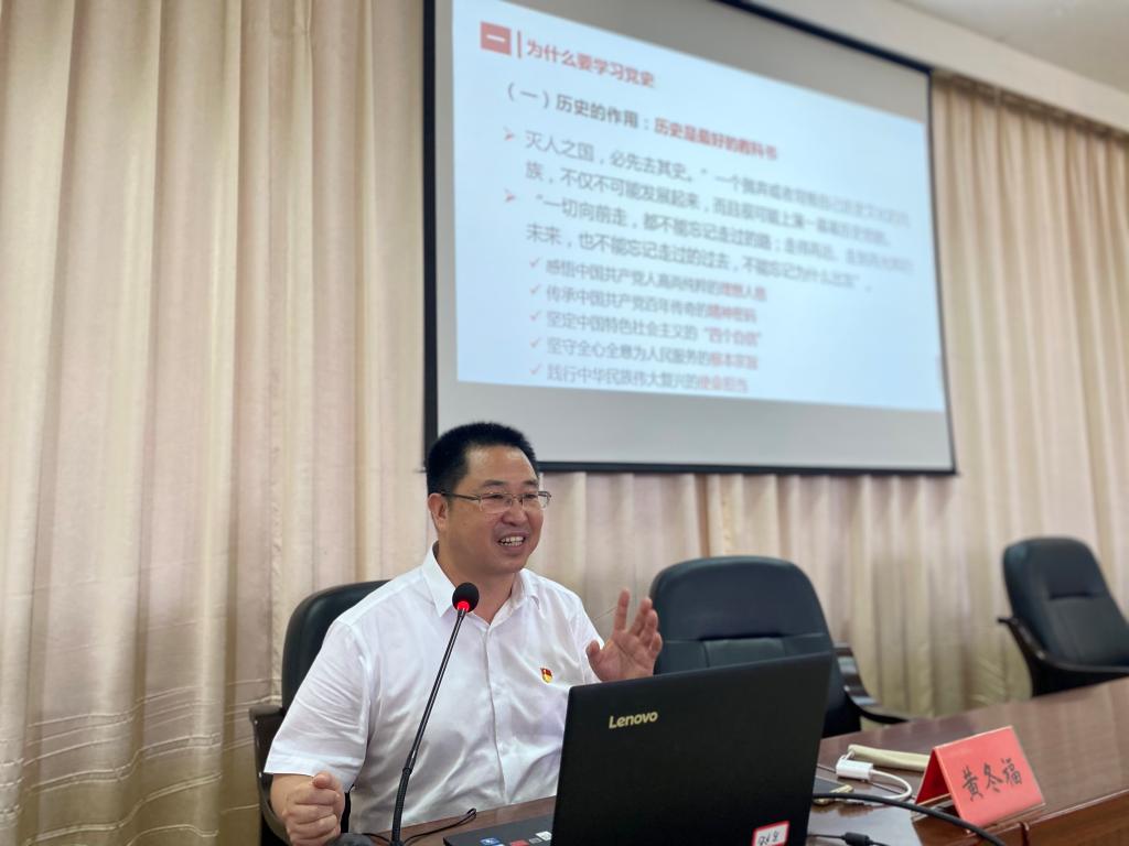 講座中,黃冬福教授以其深厚的學(xué)術(shù)功底、飽滿的熱情、生動(dòng)的語(yǔ)言圍繞學(xué)習(xí)研究黨史的目的意義、黨史重要理論內(nèi)涵、學(xué)習(xí)黨史的方法論以及如何做好黨史的忠實(shí)傳人等四大方面,深入淺出地闡釋了為什么要學(xué)習(xí)研究黨史、怎樣學(xué)習(xí)研究黨史、如何做好新時(shí)代的黨史傳人。