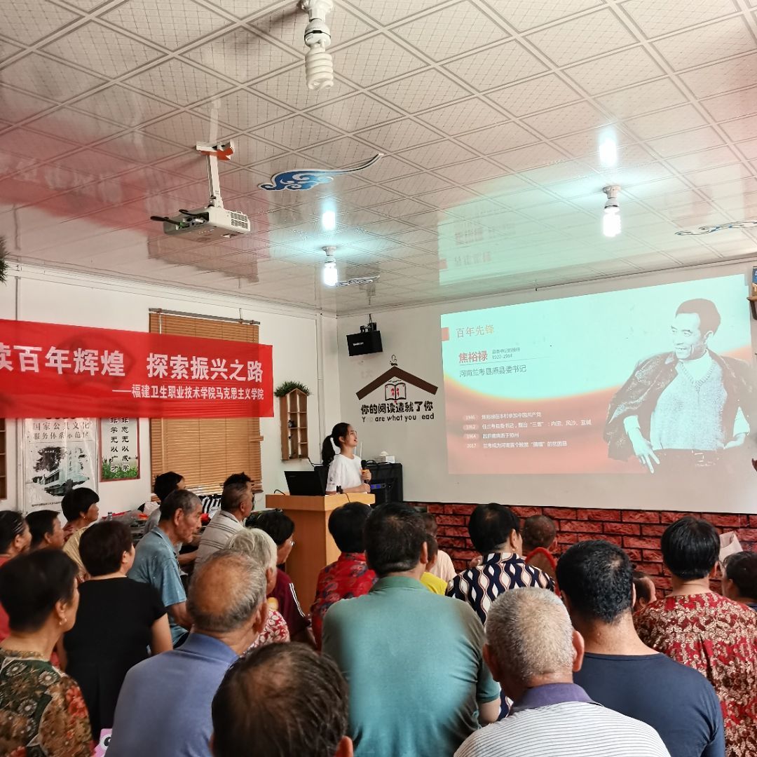 為深入學(xué)習(xí)貫徹習(xí)近平新時(shí)代中國(guó)特色社會(huì)主義思想,引領(lǐng)我校學(xué)生在生動(dòng)的社會(huì)實(shí)踐中感悟中國(guó)共產(chǎn)黨建黨百年輝煌、感受新時(shí)代使命、擔(dān)當(dāng)青春責(zé)任,21位來(lái)自不同醫(yī)學(xué)專業(yè)的福建衛(wèi)生職業(yè)技術(shù)學(xué)院習(xí)近平新時(shí)代中國(guó)特色社會(huì)主義思想讀書社社員,在馬克思主義學(xué)院熊美蘭、羅蕓、來(lái)朋珍、張?zhí)煳牡?位教師指導(dǎo)下,組建“馬上逐夢(mèng)”實(shí)踐隊(duì),于2021年7月4日-6日赴閩侯縣新坡村開(kāi)展“賡續(xù)百年輝煌,探索振興之路”為主題的暑期“三下鄉(xiāng)”社會(huì)實(shí)踐,延拓讀書社社會(huì)大課堂,走進(jìn)“大思政課”。本次活動(dòng)圍繞黨史學(xué)習(xí)宣傳、國(guó)情社情觀察、健康知識(shí)宣講、愛(ài)心醫(yī)療等方面展開(kāi)。
