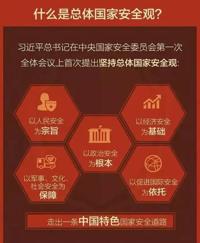 2014年4月15日,習(xí)近平總書記主持召開中央國家安全委員會(huì)第一次會(huì)議并發(fā)表重要講話,指出我們要準(zhǔn)確把握國家安全形勢變化新特點(diǎn)新趨勢,堅(jiān)持總體國家安全觀,走出一條中國特色國家安全道路。