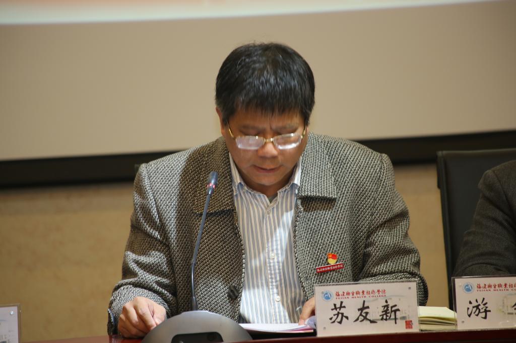 1月2日下午,我校在實訓樓四樓報告廳舉辦黨的十九屆四中全會精神集中培訓班開班式暨第一次集體培訓學習。校領(lǐng)導、中層干部、思政理論課教師、黨務(wù)干部、輔導員、師生代表共200余人參加會議。會議由黨委副書記、院長蘇友新同志主持。
