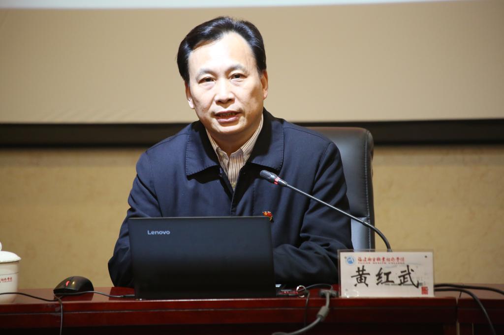 隨后,曾武祈主持召開黨的十九屆四中全會精神集中培訓班第一次培訓。本次培訓學習,我校特別邀請省政協(xié)常委、教科衛(wèi)體委員會主任黃紅武教授來校授課。