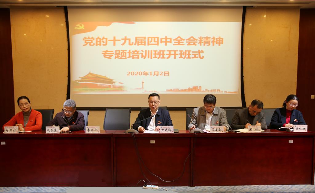 會上,黨委書記曾武祈作開班動員講話。他指出為深入學習貫徹全會精神,學校黨委制定了教育培訓工作方案,從現(xiàn)在起到6月底,將通過集中培訓、中心組學習等形式,深入系統(tǒng)學習全會精神。同時他提出三點意見:一是明確學習目的,做到學深悟透。要重點深入學習領(lǐng)會習近平總書記在全會上的重要講話精神,學習全會通過的《決定》等重要文件,把握四個深刻理解,帶著信仰、帶著責任、帶著感情、帶著好的作風宣講好全會精神,持續(xù)推動學習貫徹往深里走、往心里走、往實里走。二是堅持知行合一,務(wù)求融會貫通。各級黨組織要將貫徹落實全會精神與推進“不忘初心、牢記使命”主題教育緊密結(jié)合,運用集中培訓、專題研討、輔導講座、在線學習等多種形式深化學習。思政教師要著眼于將科學精神、科學思維、科學前沿、科學手段更深地融入思政課程。全校教師要強化思政育人,把學到的知識運用到教學中去,進一步激發(fā)學生們的愛國情懷,堅定制度自信,樹立正確的理想信念。三是強化學以致用,提升治校能力。全校中層以上領(lǐng)導干部、思政教師、黨務(wù)干部、輔導員是學習的重點群體,要親自抓、帶頭學,帶頭研討交流,帶頭宣講輔導,帶動廣大黨員、干部學習。廣大黨員干部要實干擔當起來,增強辦學治校的本領(lǐng),主動謀劃、具體分析,將學好全會精神與施政和執(zhí)行相結(jié)合,將上級政策和師生利益相結(jié)合,共同推進學校各項事業(yè)再上新臺階。