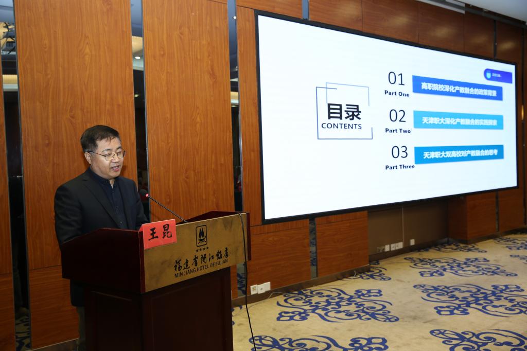 隨后,省衛(wèi)健委規(guī)劃信息處林再得主任、天津職業(yè)大學(xué)合作教育辦公室主任王昆教授分別作了題為《福建省衛(wèi)生健康發(fā)展現(xiàn)狀與思考》和《深化產(chǎn)教融合,構(gòu)建校企命運共同體》的精彩報告。