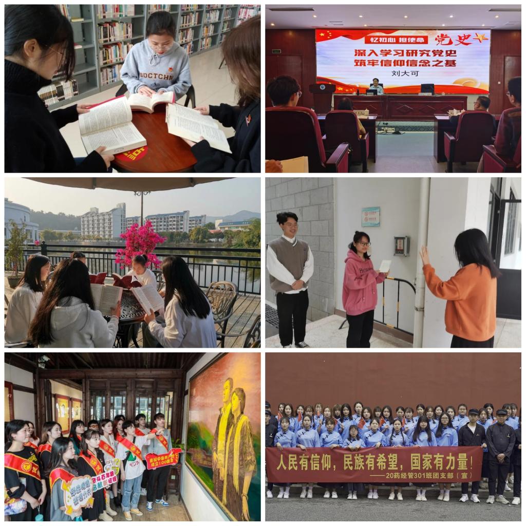 (一)個(gè)人自學(xué)。各團(tuán)支部推薦學(xué)習(xí)資料,組織同學(xué)們到校圖書館借閱黨的理論、黨的綱領(lǐng)、黨的章程等相關(guān)書籍,認(rèn)真學(xué)習(xí)黨史,了解黨情,在重溫初心中厚植人民情懷、在咀嚼苦難中堅(jiān)定人生信仰、在偉人事跡中樹立人生榜樣。