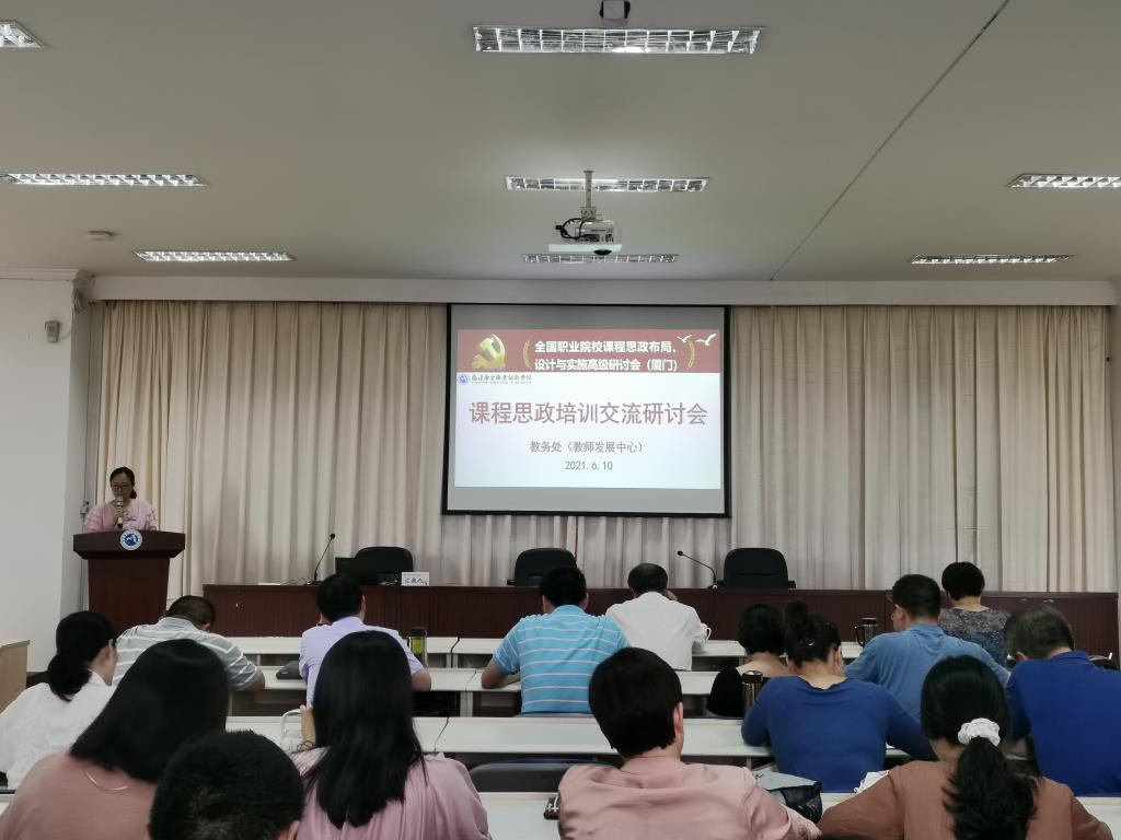 為深入貫徹落實教育部印發(fā)的《高等學校課程思政建設指導綱要》和《職業(yè)教育提質培優(yōu)行動計劃(2020-2023年)》文件精神,全面推進我校課程思政建設,創(chuàng)新思想政治教育模式,2021年6月10日下午,教務處教師發(fā)展中心舉辦了課程思政培訓交流研討會。
