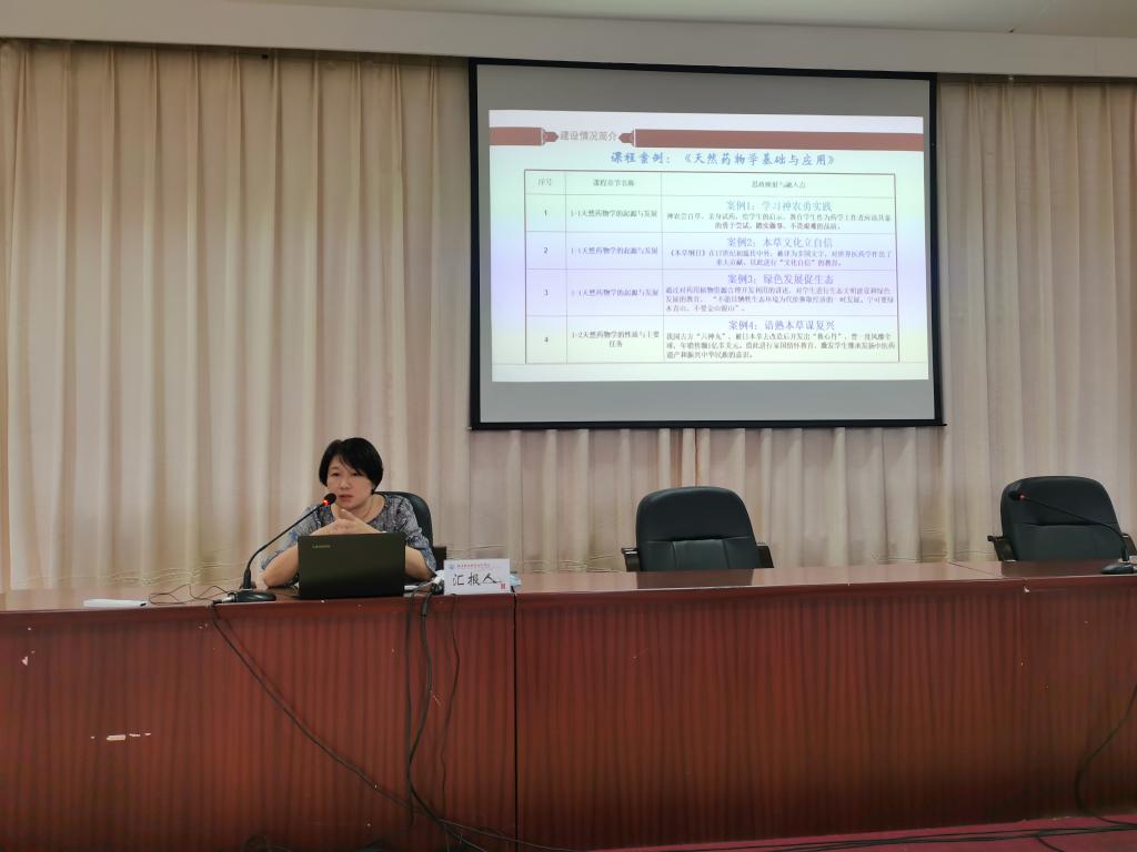 隨后,教務處處長朱扶蓉以《天然藥物學基礎與應用》課程思政示范項目建設與申報為例,介紹了從2018年11月開始對課程思政建設的思考與探索,到2021年5月入選教育部課程思政示范課程、教學名師及教學團隊的兩年半建設歷程,從課程思政建設總體設計、每個案例蘊含的思政元素、修訂人才培養(yǎng)方案和課程標準、撰寫制作課程思政案例和視頻、出版收錄課程思政案例和視頻的創(chuàng)新融合教材,到項目申報材料每個細項的撰寫都進行了詳細的說明,并從教育情懷、政策研讀、理論學習、團隊協(xié)作、深度教研、資源建設、精準契合、成果固化、參賽獲獎和凝練總結等十個方面作了建設經(jīng)驗的分享,博得了在座全體教師的熱烈掌聲。
