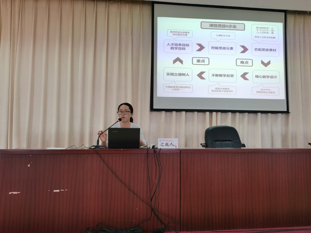 研討會分為兩個議程,首先由醫(yī)學系外科教研室主任劉景城老師和醫(yī)學技術系眼視光教研室主任張文賢老師分別作題為“從課程到思政——三線融合 理實一體 六步嬗變”和“從課程到思政元素——春風化雨、潤物無聲”的培訓心得分享。劉景城、張文賢兩位老師分別從不同視角介紹了在“全國職業(yè)院校課程思政布局、設計與實施高級研討會”中,培訓專家對課程思政建設的指導,更是結合了自身所教的專業(yè)和課程,介紹了其所在教學團隊對《傳染病學》和《眼視光技術》課程的思政元素梳理,思政教育方法融入課堂教學的思考。