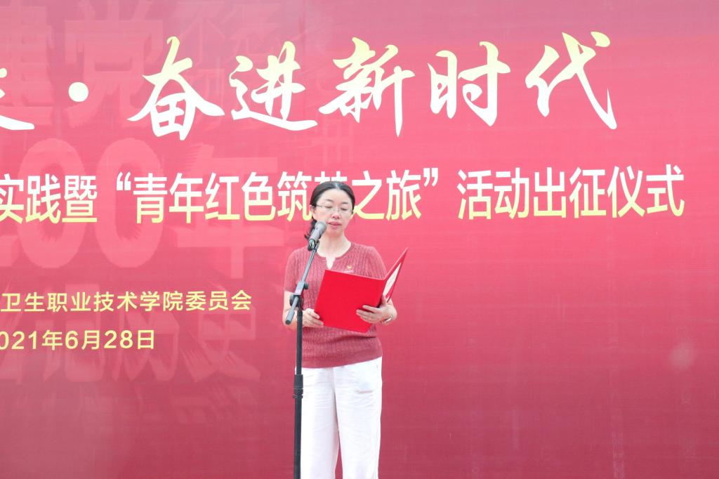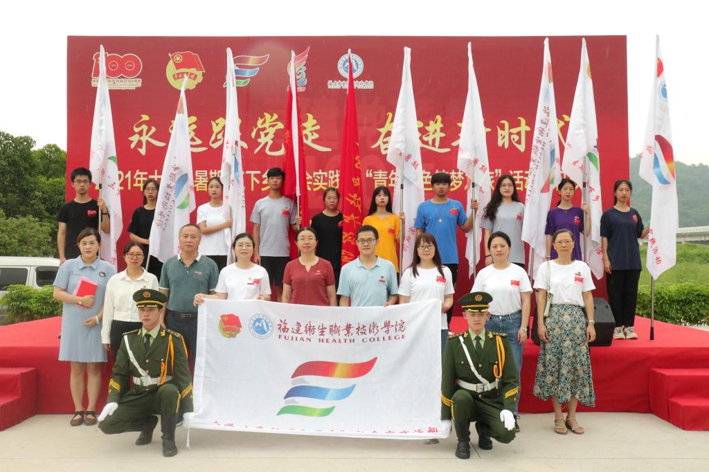 馬克思主義學(xué)院、團(tuán)委負(fù)責(zé)人和藥學(xué)院、醫(yī)學(xué)技術(shù)系、健康管理系黨總支書(shū)記、副書(shū)記為8支暑期“三下鄉(xiāng)”社會(huì)實(shí)踐團(tuán)隊(duì)授旗。