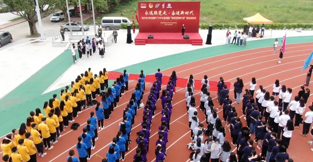 6月28日上午,七一前夕,我?!坝肋h(yuǎn)跟黨走 奮進(jìn)新時(shí)代”2021年暑期“三下鄉(xiāng)”社會(huì)實(shí)踐暨“青年紅色筑夢(mèng)之旅”活動(dòng)出征儀式在田徑運(yùn)動(dòng)場(chǎng)舉行。